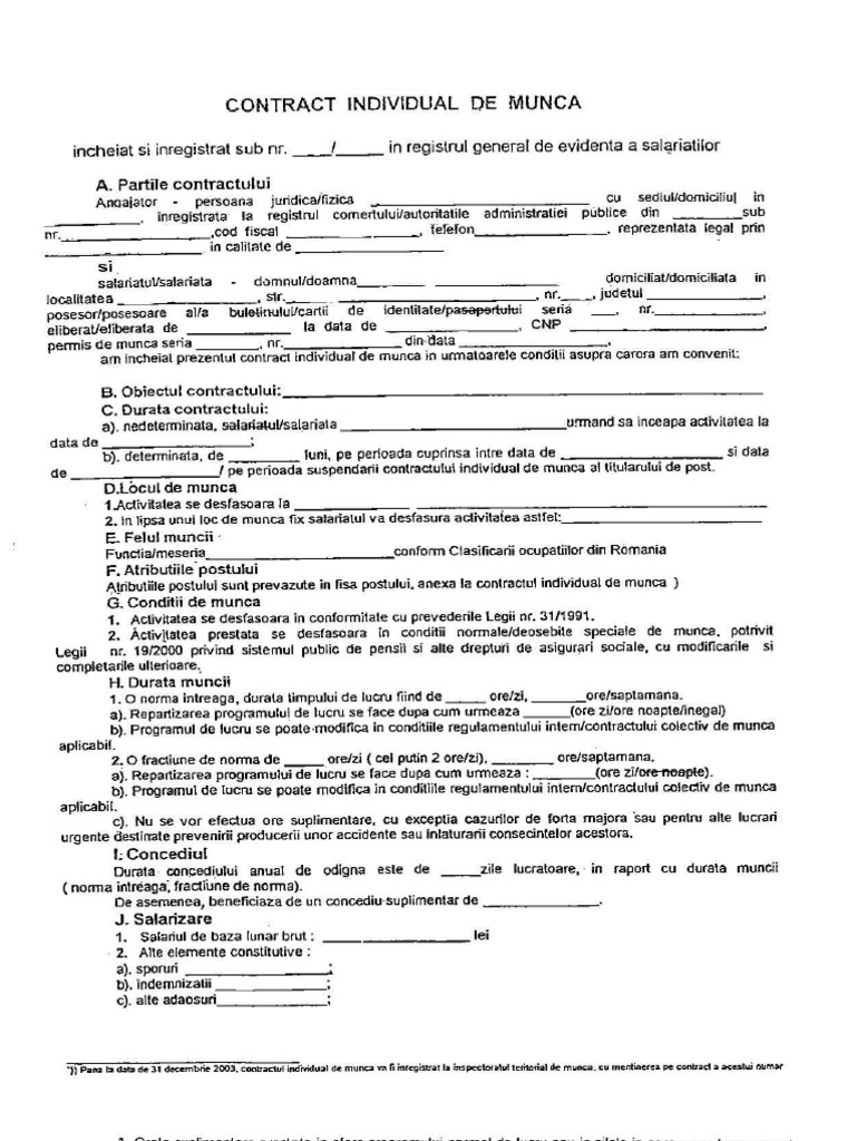 Contract colectiv de muncă unic la nivel de sector de activitate învăţământ preuniversitar (pdf). În contractul de muncă, prevederile legale sunt foarte restrictive, spre deosebire de alte tipuri de contracte. Contract individual de muncă contractul individual de muncă nr.
