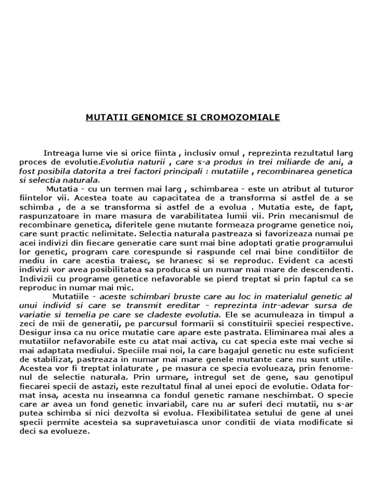 Cromozomiale (afectează unul sau mai mulți cromozomi din complementul cromozomial uman) și mutații genice (afectează una sau mai multe gene ale. Bai, eu tot nu inteleg niste chestii legate de evolutie, selectia naturala si mutatii genetice. O alta categorie o constituie mutatiile letale si semiletale care afecteaza gene de importanta majora in organism •mutatiile stau la baza evolutiei.modificarile genetice aparute la nivelul unei populatii sporesc variabilitatea acesteia.